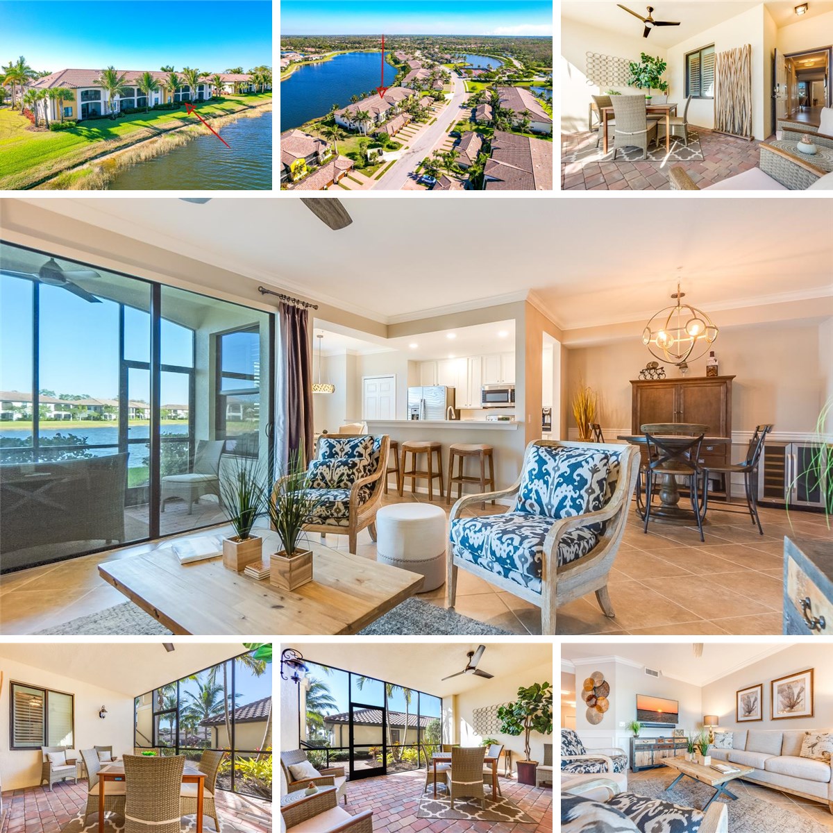 Welcome to your dream condo in Naples! Nestled within the exclusive Avellino at Treviso Bay community, this stunning 2-bedroom, 2-bathroom residence with a DEN and a 1-car GARAGE offers the perfect blend of luxury and leisure. Step inside this TURNKEY condo, where modern living meets comfort. Highlights include an updated kitchen with quartz countertops and stainless steel appliances, plantation shutters on impact resistant windows, ceramic tile throughout, wood detail with crown molding and wall-panel wainscoting, and tastefully upgraded light fixtures and ceiling fans that enhance the space. Custom closet organizers provide ample storage, and a reverse osmosis purification system for the kitchen sink ensures your water is always fresh. Relax and entertain in not one, but two screened outdoor areas, with one offering serene lake views. Enjoy resort-style living with access to Avellino's own sparkling community pool, pickleball courts, and a dedicated grilling area just steps away. As part of Treviso Bay’s amenity-rich lifestyle, you’ll also benefit from an impressive clubhouse featuring both elegant and casual dining options. Experience an active lifestyle with community amenities that include golf (available from May to October), tennis, bocce, spa, fitness activities, and a vibrant outdoor bar, all complemented with a lagoon style pool and a rejuvenating hot tub. Located just 5 miles south of downtown Naples and nearby shopping, award winning dining and gulf coast beaches. This condo combines the perfect location with a wealth of lifestyle amenities. Don’t miss out on the opportunity to experience everything this exceptional property and community have to offer!